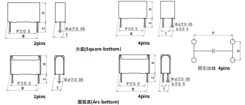 ● 金属化聚酯膜,无感卷绕结构,塑料外壳(UL94 V-0)