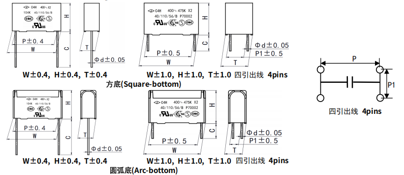 - 商品名称: C4H 金属化聚丙烯膜抗干扰电容器(X2类, 400Vac)