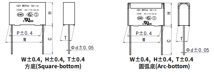 - 商品名称: MKP66 金属化聚丙烯膜抗干扰电容器(x1类,760Vac)