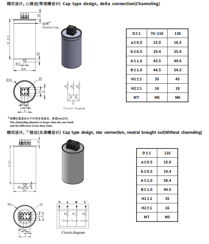 ● 金属化聚丙烯膜设计,自愈性优良<br /> ● 防爆设计,过压力保护更安全<br /> ● 干式树脂填充,树脂阻燃等级 UL94 V-0<br /> ● 干式结构,无漏液风险,安装方向更灵活<br /> ● 适用于交流电力系统的功率因数校正,提高低压电网的功率因素,广泛用于工厂、住宅楼等场合的无功功率补偿柜